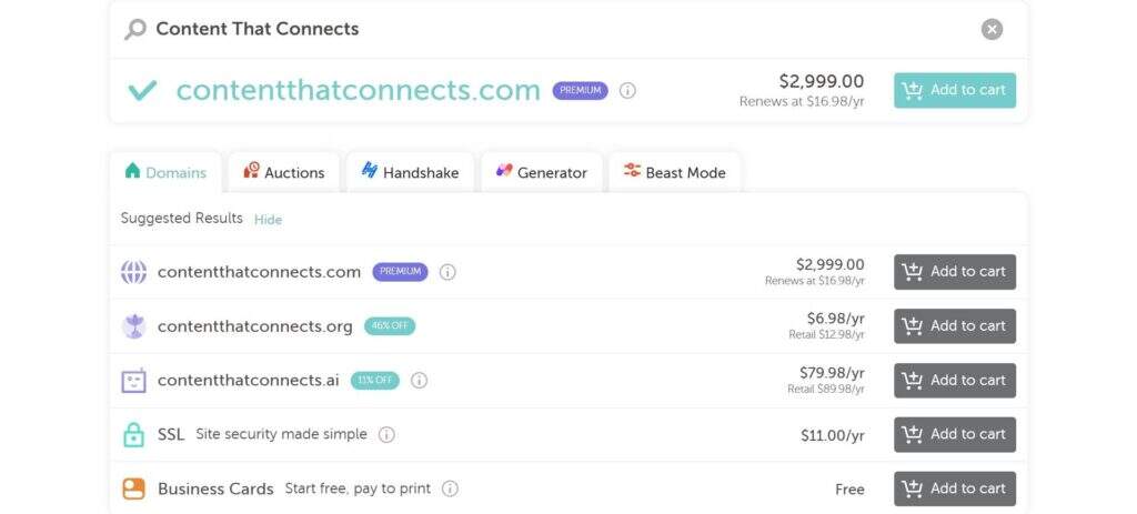 – 在域名购买网站 Namecheap 上搜索域名。(来源:Namecheap)