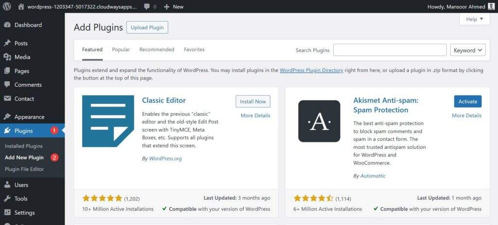 您可以通过仪表盘的插件→ 安装新插件中来安装您所需要的插件。但建议:避免添加过多插件,因为它们会降低网站速度。
