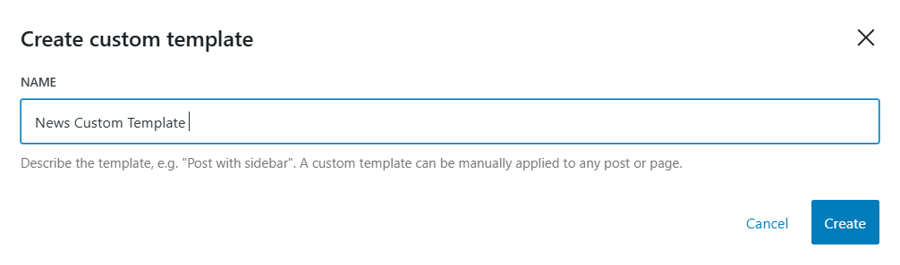 - 接下来,我会将模板命名为“News Custom Template”,然后点击 “创建”。