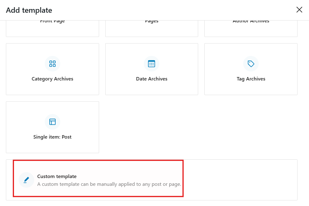 - 弹出新窗口后,选择要创建的模板类型。我会选择自定义模板。