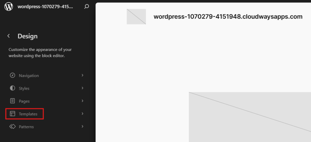 - 在网站编辑器中,点击左侧面板中的模板。