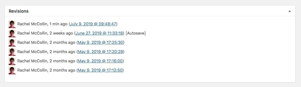 如果您不使用古腾堡编辑器,您可以通过滚动到编辑屏幕底部并在此处找到它们的列表来访问修订: