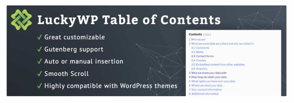 LuckyWP与多个WordPress页面构建器插件兼容。用户可以通过调整宽度、悬停颜色和字体大小来自定义TOC的外观。它甚至可以选择浮动TOC。