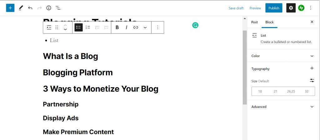如果您是Gutenberg的狂热用户,请考虑使用此插件来创建TOC。它直接从侧边栏小部件设置中提供Gutenberg的原生样式选项。