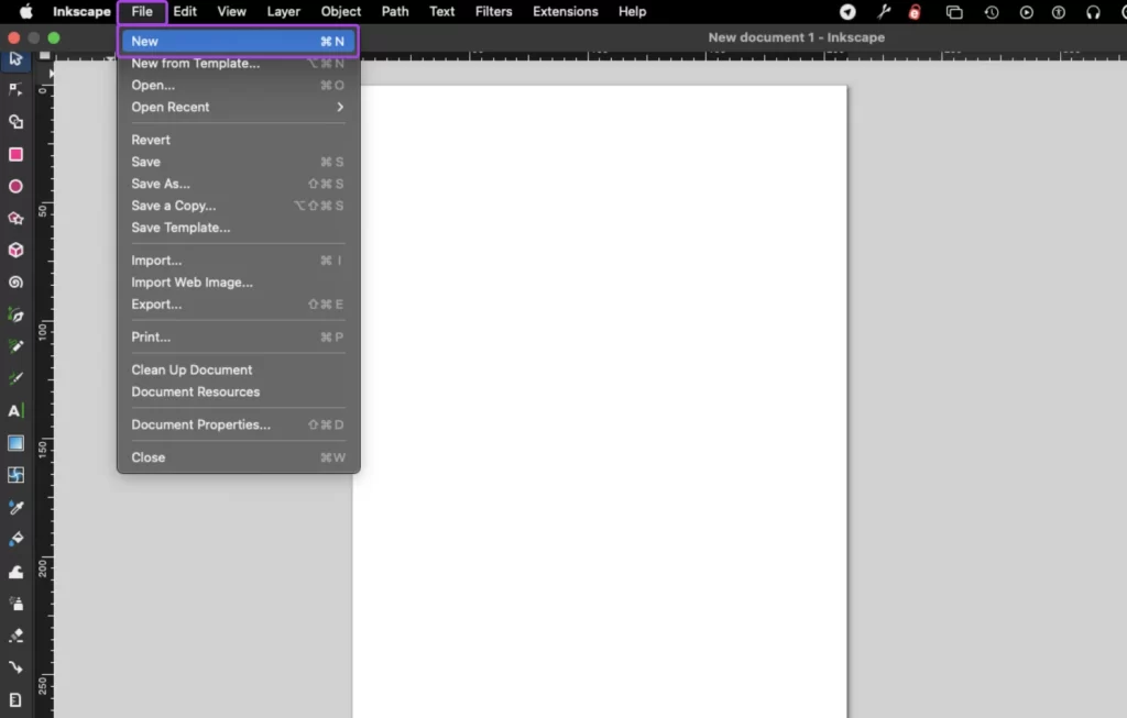 如果你要重新开始,你需要为你的作品创建一个画布。在 Inkscape 中,访问 File > New,然后选择新图像的尺寸。