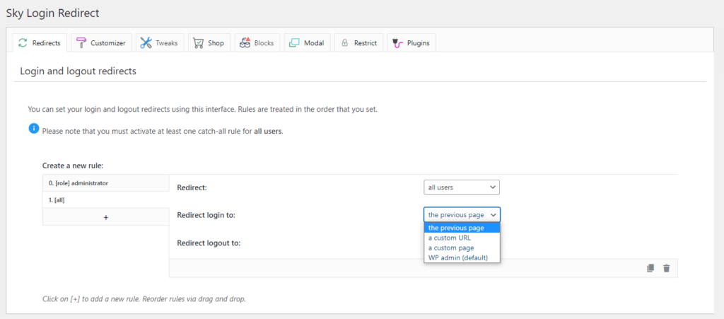 不过,LoginWP 可以免费使用,而且功能强大,重定向规则简单。