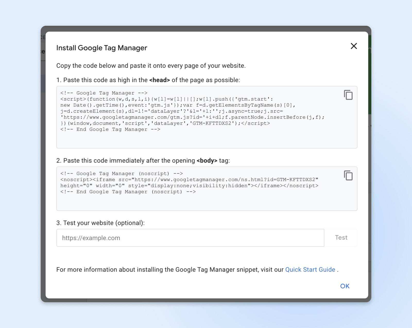 步骤 2:在网站上安装 Google 标签管理器代码(2 种方法)