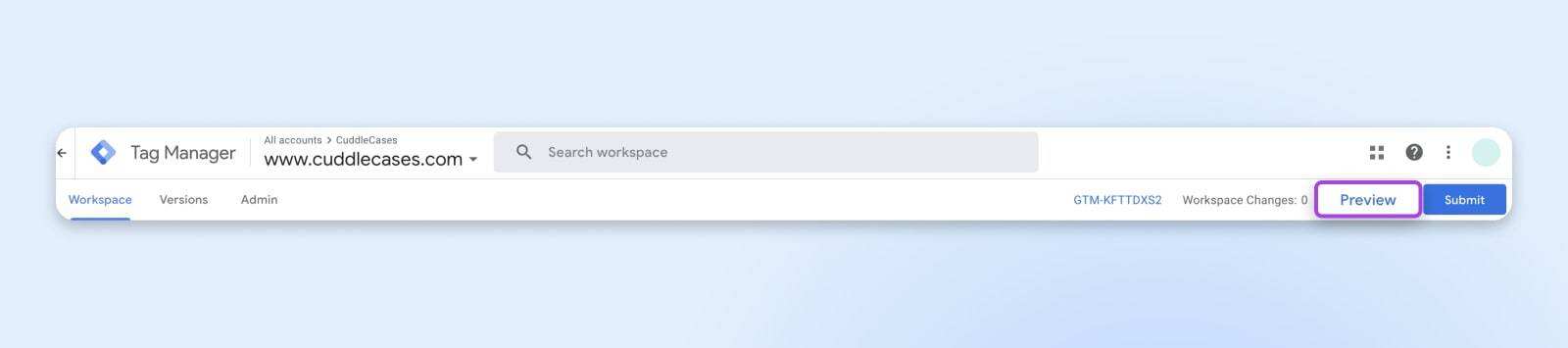 返回 GTM 并点击 “Preview”。这将打开一个新窗口,将 Google Tag Assistant 连接到您的网站。输入网站 URL 并点击 “Connect”。