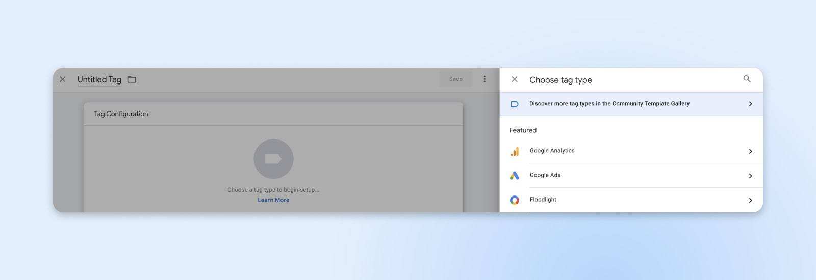 在标签配置框中,选择 “Google Tag”。在 “Tag ID” 字段中,输入您的 Google 标签 ID。点击 “Save”。