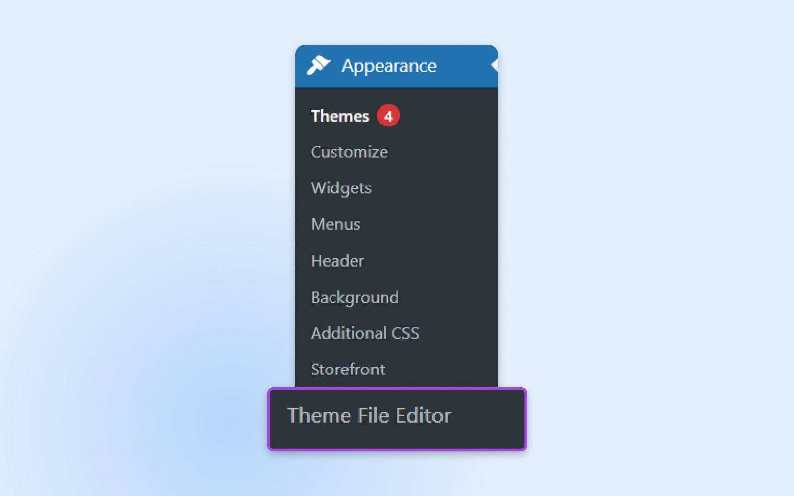 右侧的导航栏是一个很好的开始。在 “外观”- “主题文件编辑器”。如果找不到源代码,请跳到方案 2,这对初学者来说要容易得多。