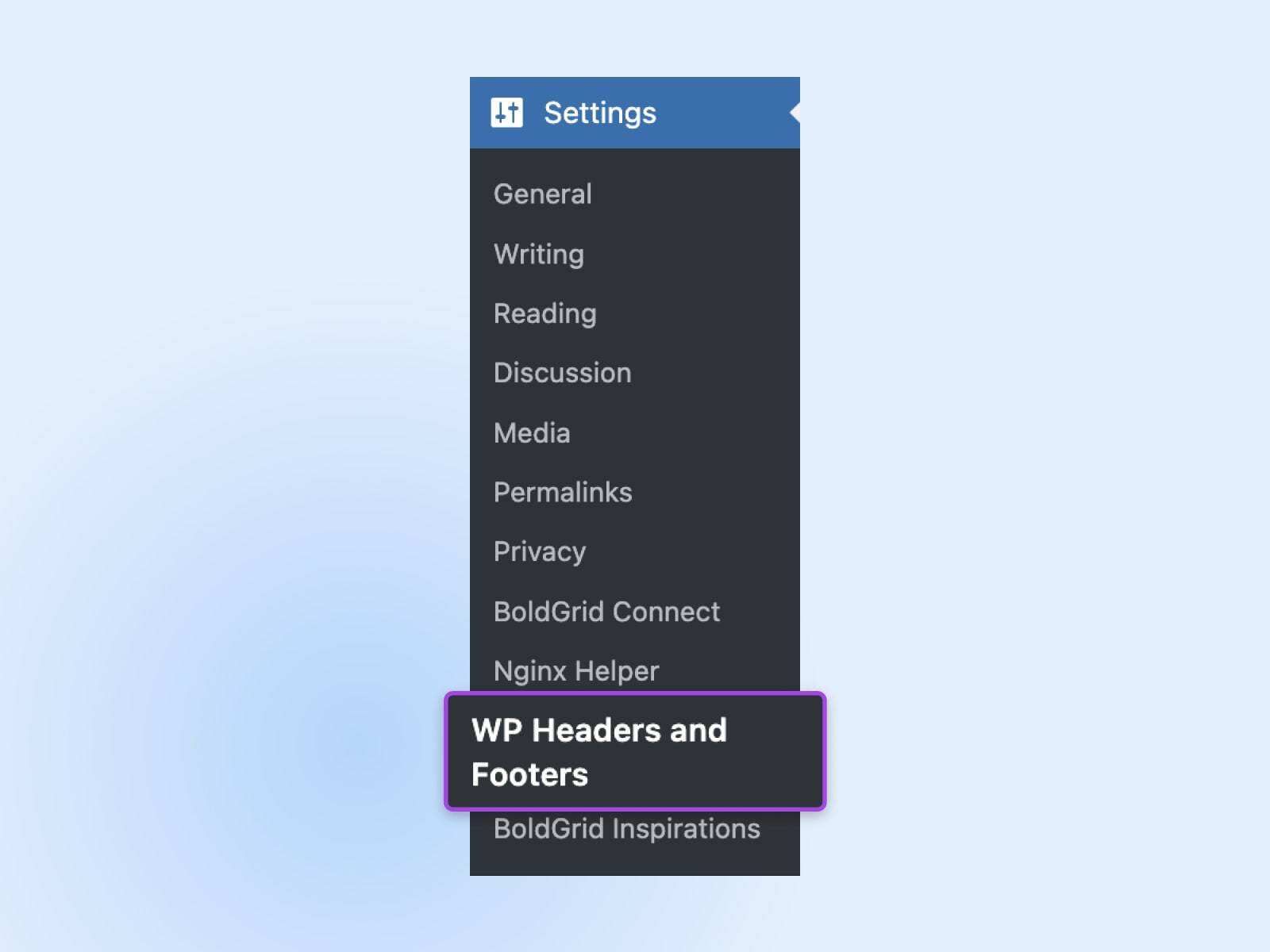 转到 “Settings”,然后转到 “Insert Headers and Footers”。