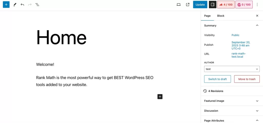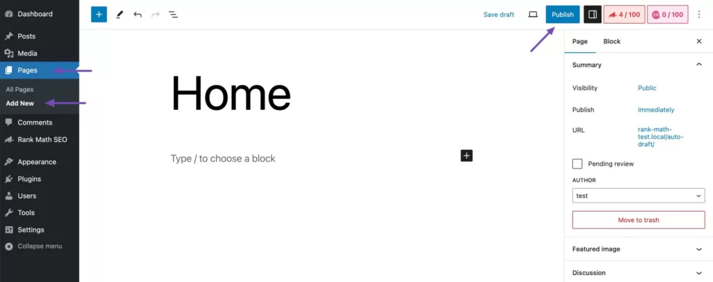 创建一个要设置为静态主页的新页面。您可以将其命名为 “主页” 或 “欢迎”。完成后,点击 “发布” 来发布页面。
