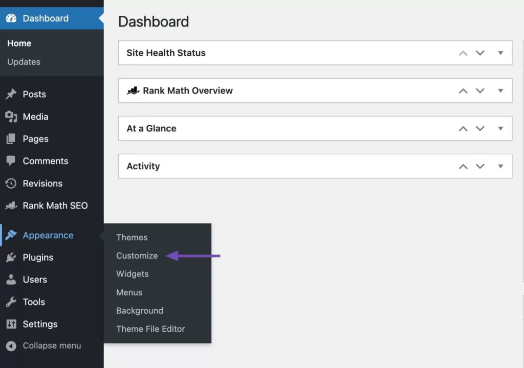 为此,请从 WordPress 面板导航至外观 → 自定义。