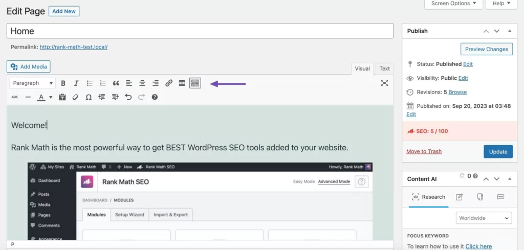 此外,您还可以在经典编辑器中添加图片,使主页更具吸引力。