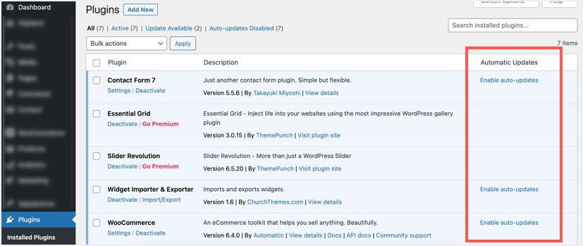 - 您可以在布局的最后一列中看到每个插件的“自动更新”状态。