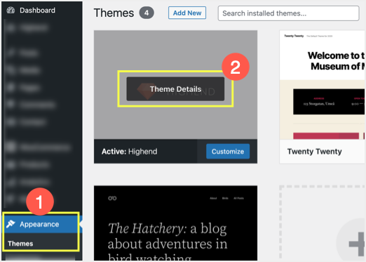 - 在这里,您可以查看站点中所有已安装的主题并将鼠标悬停在活动主题上。