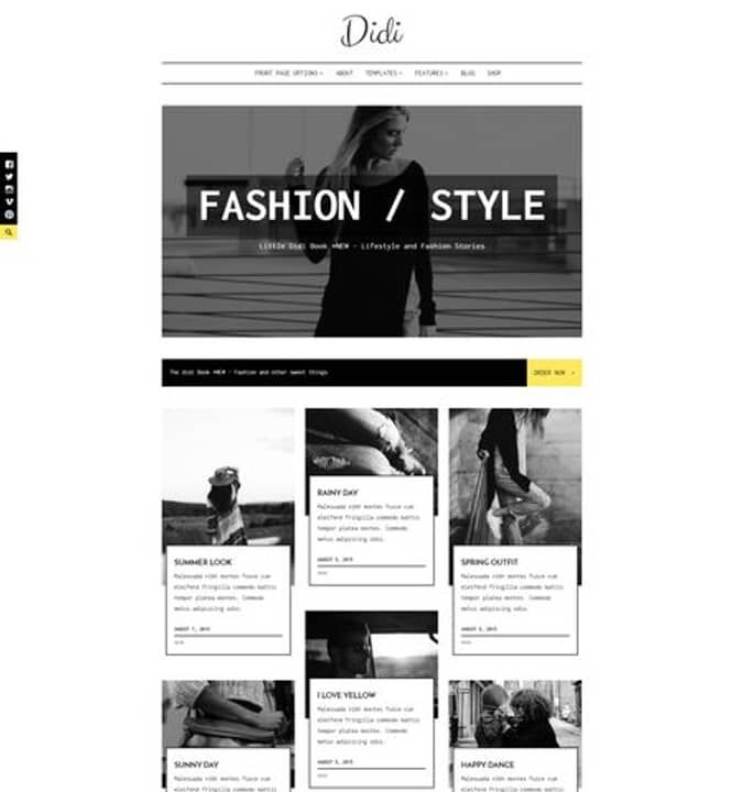 这是一款适用于时尚和生活方式博客的优雅主题,具有与众不同的设计特点。其界面类似于复古风格,采用黑白配色方案。Didi 提供独特的打字机字体和类似明信片的内容框。