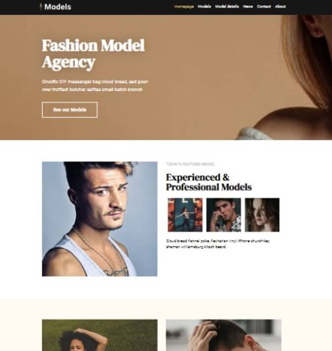 Fashion Model Agency 是一款专为时尚模特设计的简洁 WordPress 主题。有了它,您可以宣传自己,建立一个经纪公司网站,帮助您向全世界介绍自己的团队。该模板允许您展示每位模特的作品集、服务、照片库,并在博客上发布新闻和文章。