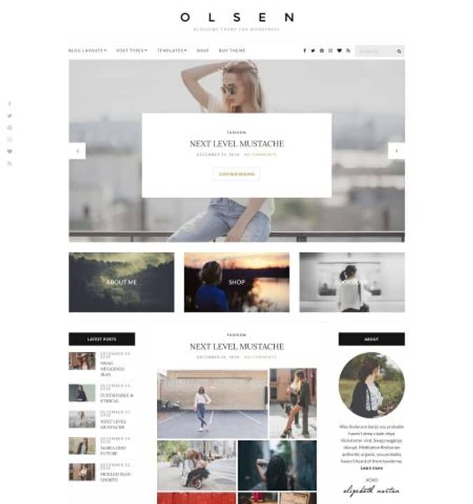 Olsen 是一款出色的博客主题,可帮助您建立一个精美的时尚生活网站。它提供简洁、时尚的设计和在线商店,适合想要销售服装、珠宝或配饰等产品的用户。