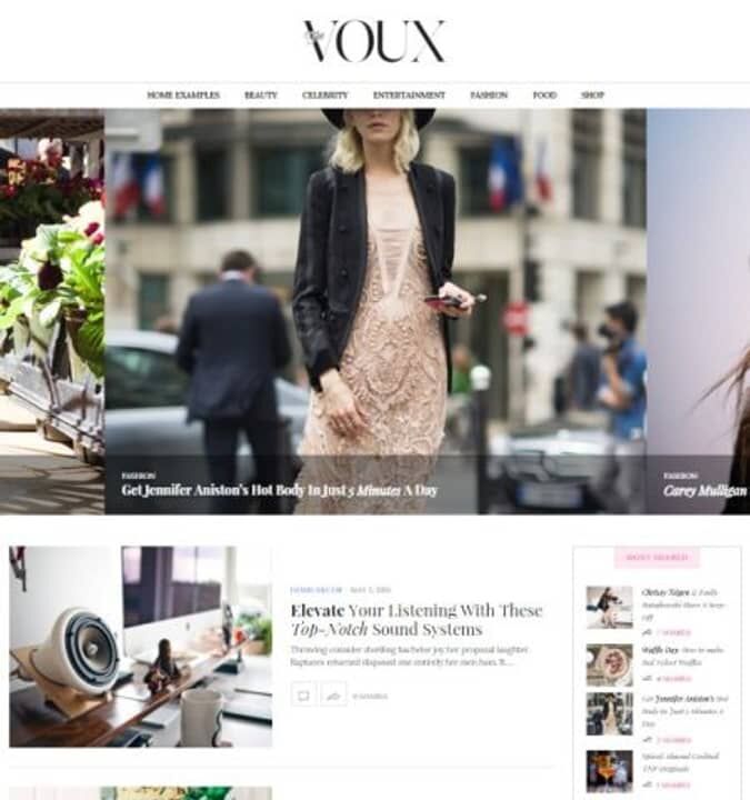The Voux 是一款精美的 WordPress 主题,适用于时尚杂志和博客。它看起来很现代,有一个旋转木马滑块、优雅的侧边栏和小部件、优雅的字体和图片、滑出式菜单,还为您的时尚相关产品提供了一个在线商店。