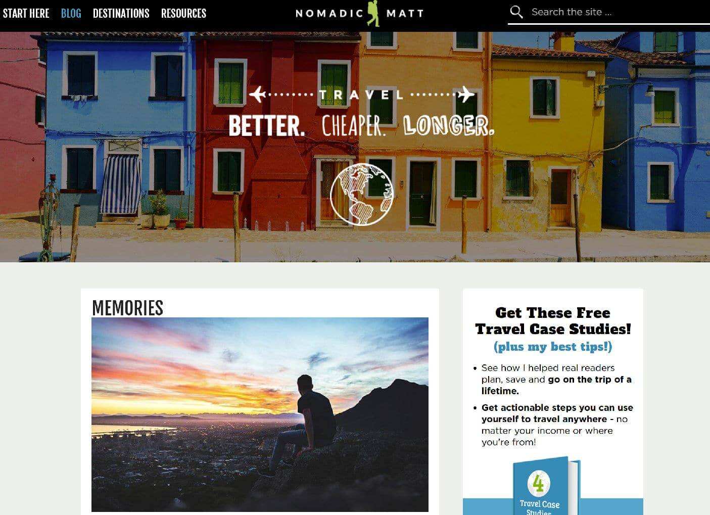 Nomadic Matt 可以说是最受欢迎的旅游博客,他认识到了这些策略的潜力,但却选择了不同的方向。他在财经博客上发表客座博文,介绍如何旅行省钱。他还在创业播客上客座发帖,讲述他是如何通过自己的旅游博客建立业务的。