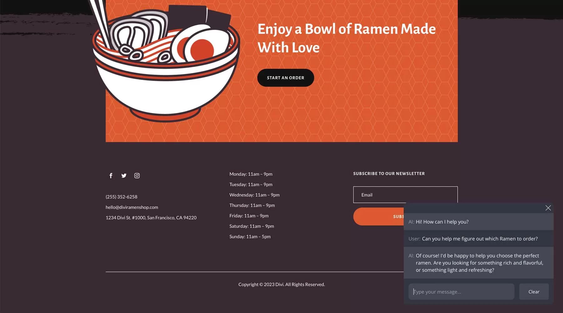 Elegant Themes 的新旗舰 AI 产品 Divi AI 在 Visual Builder 中加入了 ChatGPT (3.5),因此您可以即时生成文本。它还可用于创建网页、撰写博文或改进已撰写的文案。