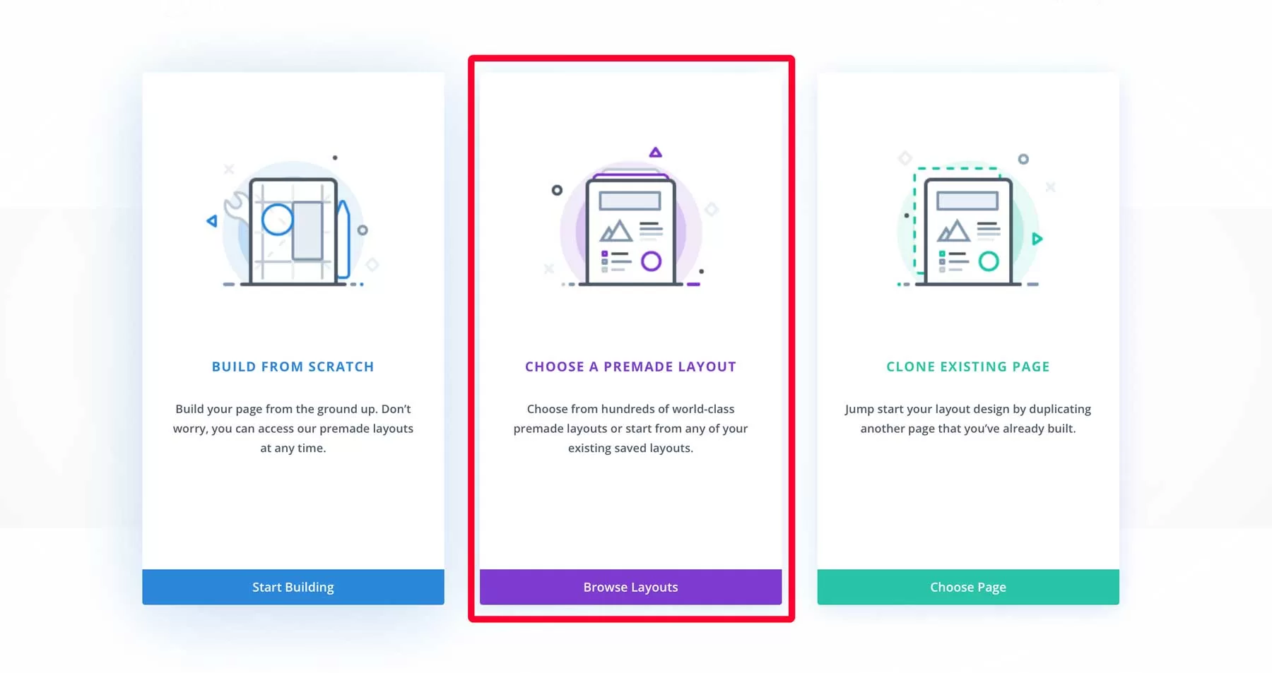 你可以从头开始创建一个新页面,也可以选择一个预制版面。我们将选择使用预制布局创建页面:
