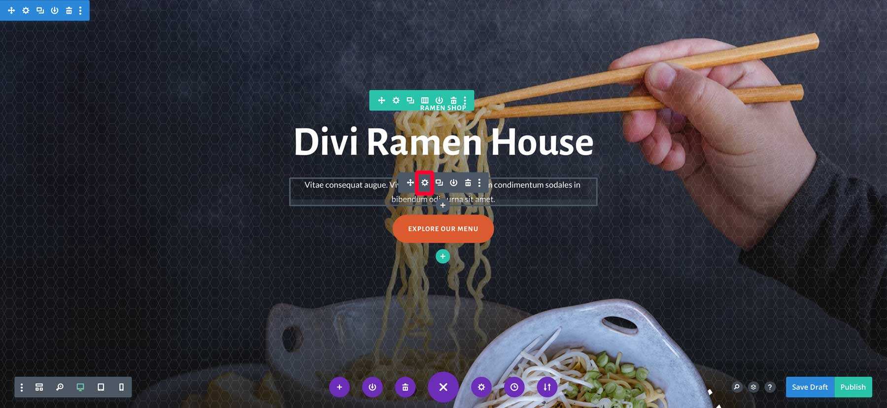 在 WordPress 中使用 ChatGPT 的最快方法之一就是自动生成副本。Divi AI 使用与 ChatGPT 相结合的专有技术,让 Divi 对您要创建的内容有独特的洞察力。Divi AI 可以检查周围的内容,并在使用预制布局或以前创建的页面时提出建议。要展示这一点,请选择页面标题下的文本框,将鼠标悬停在文本框上,显示灰色设置图标。