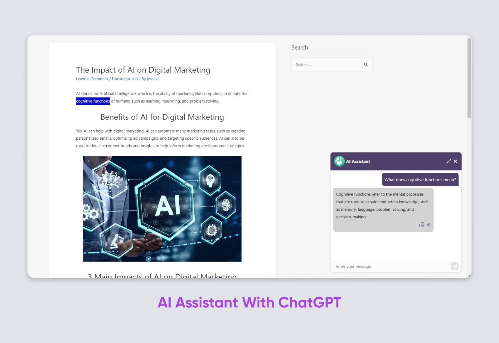 如果您想让人工智能聊天机器人为您和您的用户提供帮助,不妨试试 AI Assistant With ChatGPT。这个 WordPress 插件可以在网站前端作为聊天机器人与游客互动,但它还可以与后端集成。
