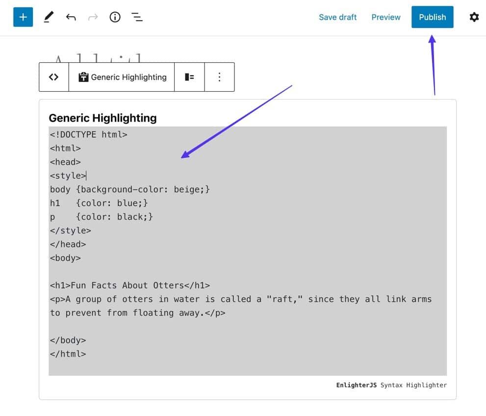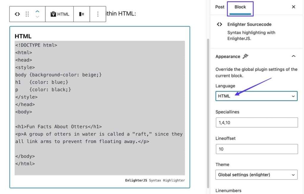 我们将在本教程中使用Enlighter插件,因为它提供了标记您在代码框中显示的代码类型的选项,以及许多其他样式功能。然而,非常欢迎你尝试其他人,因为他们大多都做同样的事情。