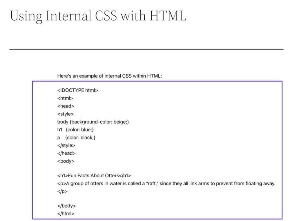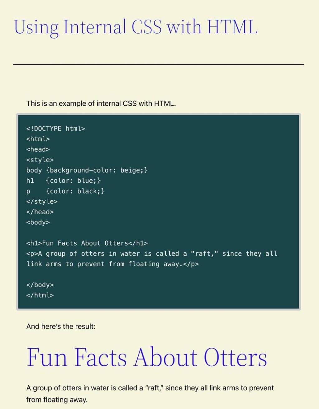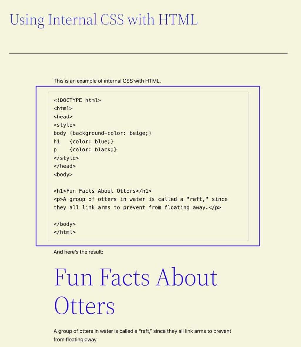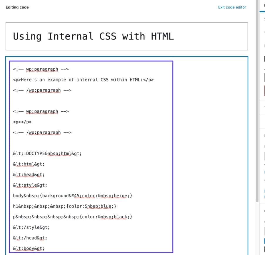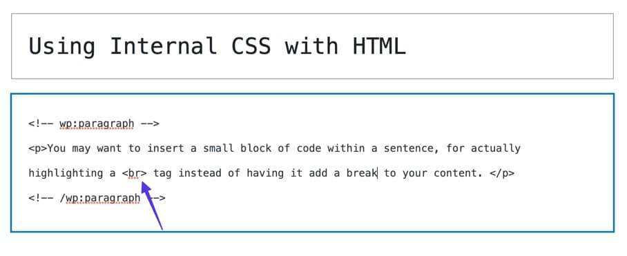 为了练习在WordPress中显示代码,你可以使用下面的代码片段,它使用HTML和内部CSS来产生一个简单的结果,即一个蓝色的标题和一个黑色的段落: