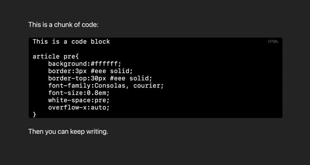 正如您所看到的,代码区块相当简单,但它提供了在博客文章上发布代码时维护格式的必要功能。