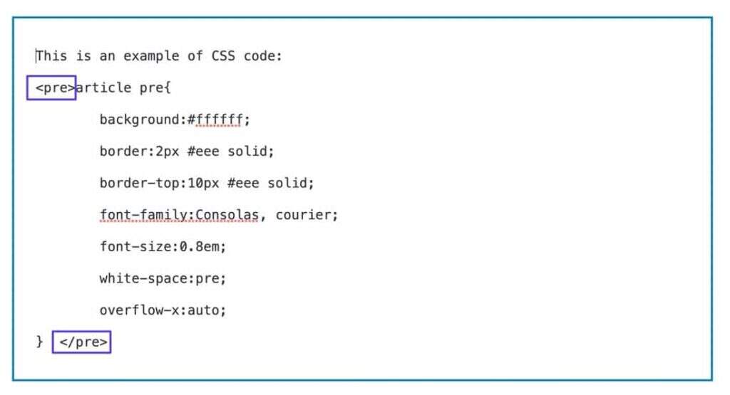 标签也许在WordPress上显示代码最古老但仍然非常可靠的方法是在代码片段周围添加特定的HTML标记。这种方法最适合使用经典的WordPress编辑器或任何HTML编辑器。
