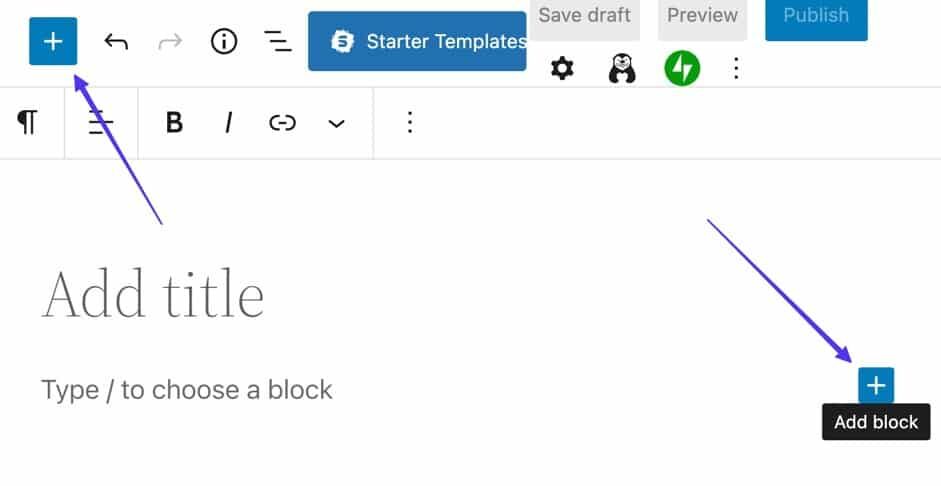 首先,在WordPress中打开一个文章或页面,然后单击其中一个“添加区块”按钮。