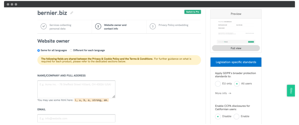 首先,您需要为工作选择合适的工具。简而言之,有两种解决方案需要权衡:Termageddon和iubenda。