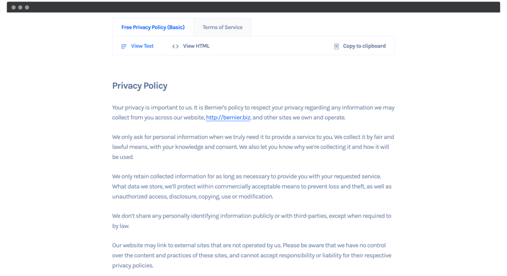 您可能想要一个比WordPress解决方案更简单的隐私政策。好消息是,有许多免费(尽管有限)工具可以帮助您制定隐私政策。