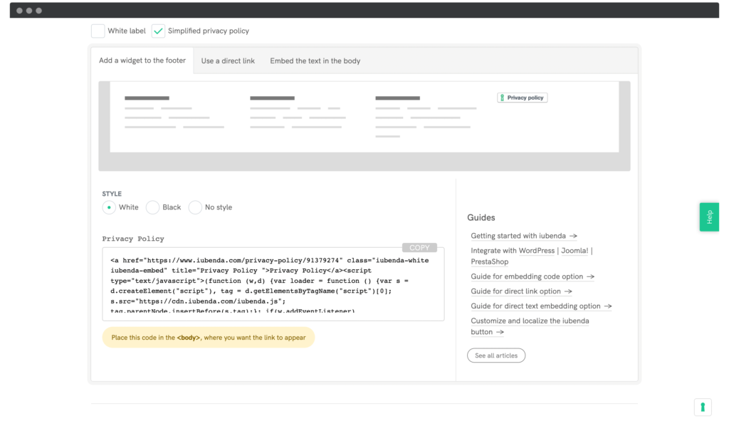 - iubenda的网站上有一组出色的支持文档和知识库文章。