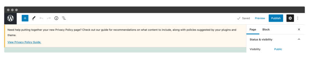 单击编辑链接后,您将进入包含您的隐私政策框架的块编辑器页面: