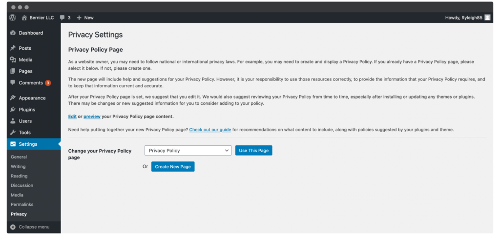 首先,前往WordPress后端的“设置”>“隐私”页面。这本质上是您的隐私政策的中心: