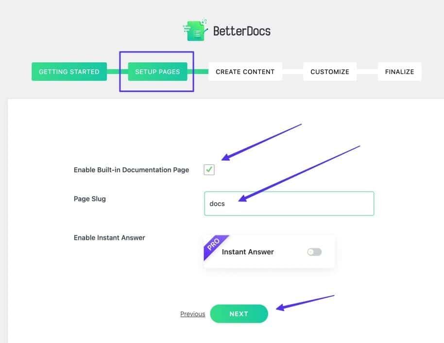 BetterDocs提供了一个很棒的启动指南,可以在几分钟内设置好您的百科。逐步完成这些步骤,但请确保在“Setup Pages”选项卡处停止。