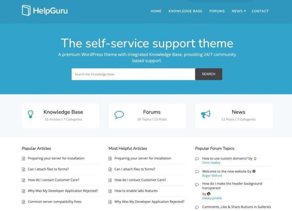 - 带有搜索栏和最流行文章的预制入口/登录页面,以帮助用户入门。