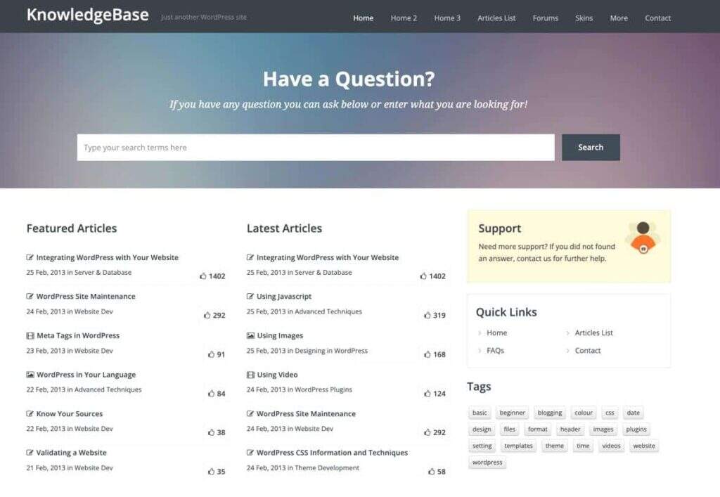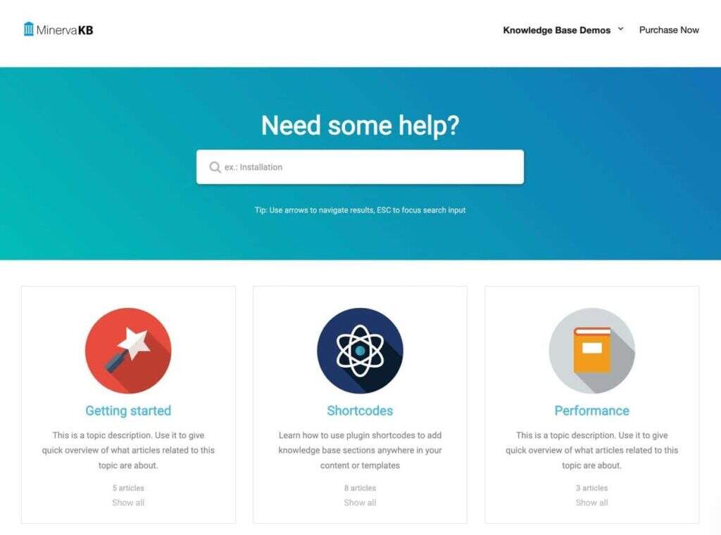 Knowledge Base来自Echo Plugins,它提供了一些演示布局,可以在几秒钟内开始制作WordPress百科或知识库。