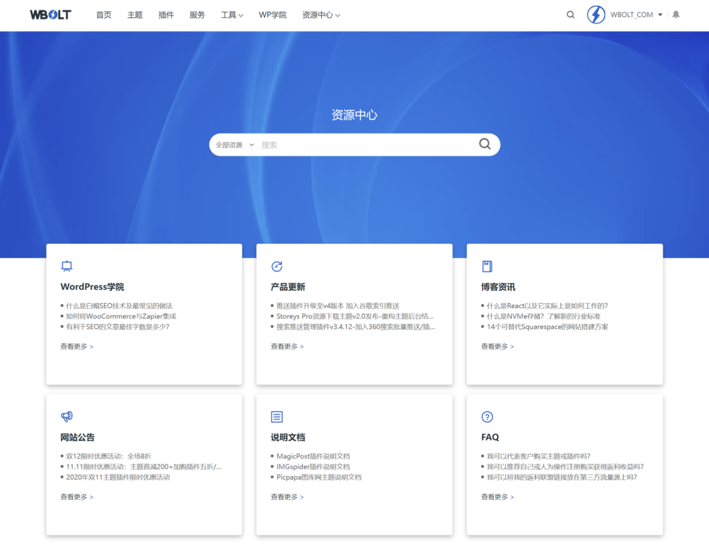 闪电博资源中心展示用于WordPress学院知识库、网站公告、说明文档、FAQ帮助中心和闪电博博客等内容。