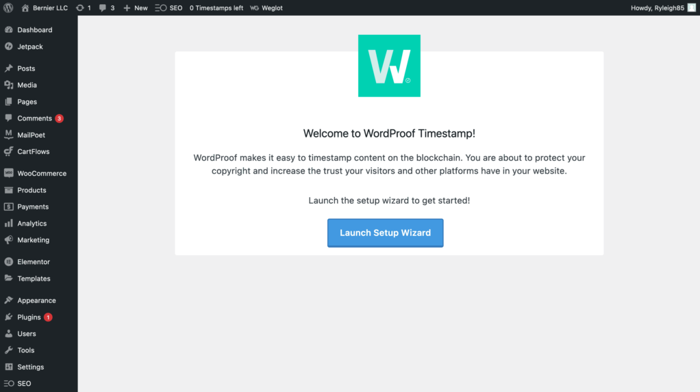 2. 运行WordProof设置向导(并注册WordProof帐户)