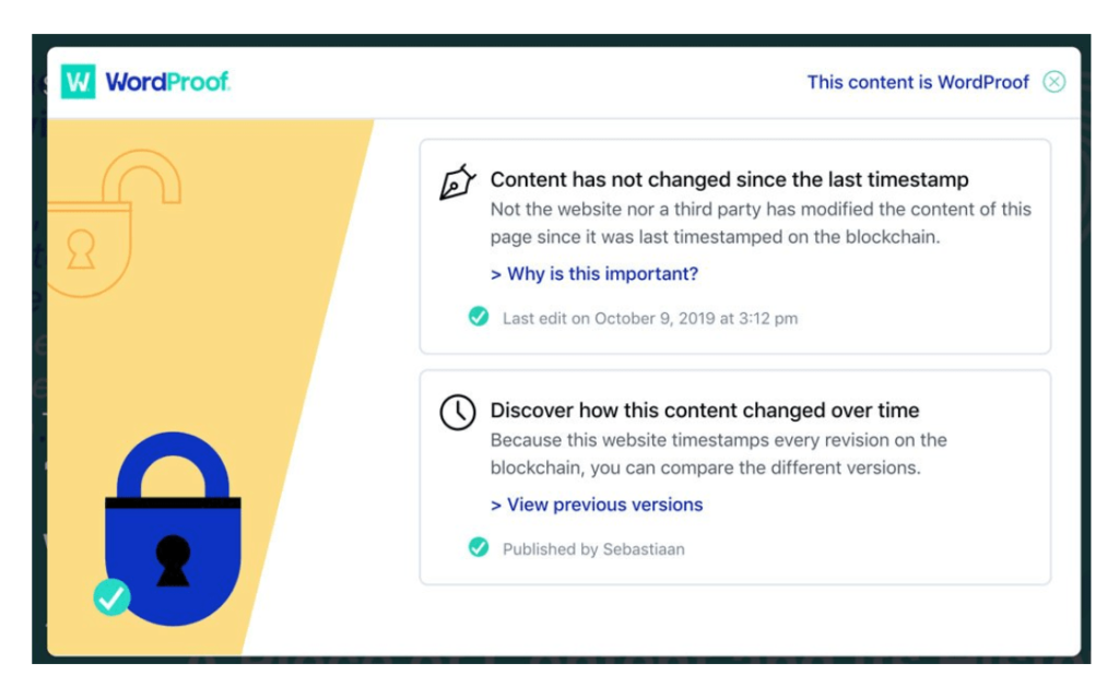 在普通用户加入之前,区块链等新技术通常需要一个磨合期。但是,如果您使用诸如WordProof之类的时间戳插件,您可以验证您的内容,为用户提供SSL样式的有效性证书,并更好地保护您的内容。