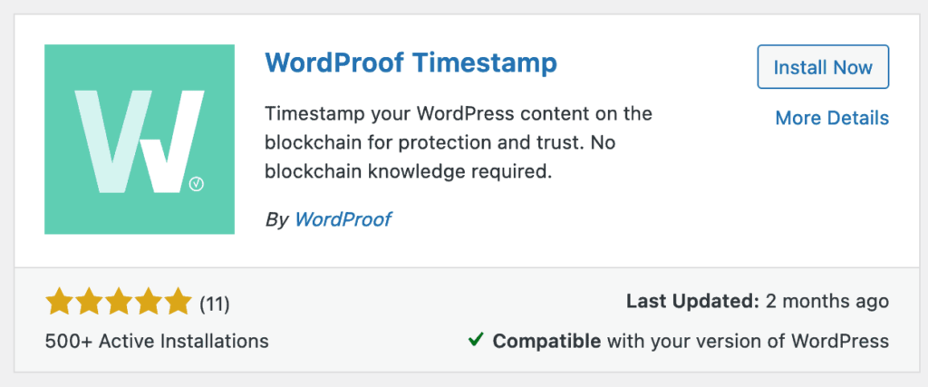 正是这最后一点使WordProof如此有趣。它利用区块链的力量在WordPress中添加时间戳,为您的内容提供保护。我们接下来会谈到这个。