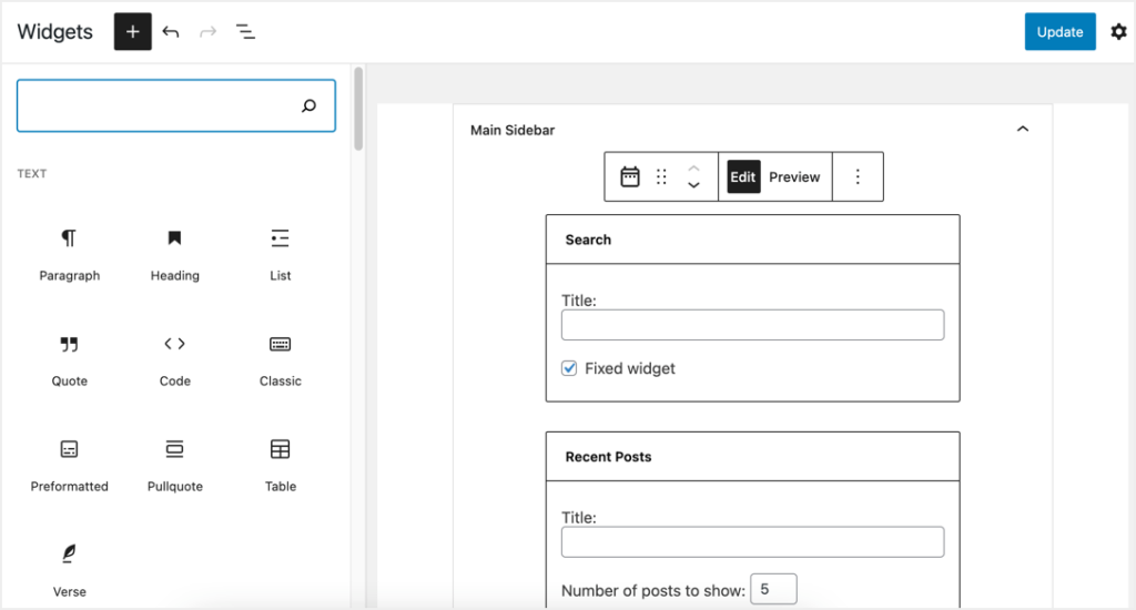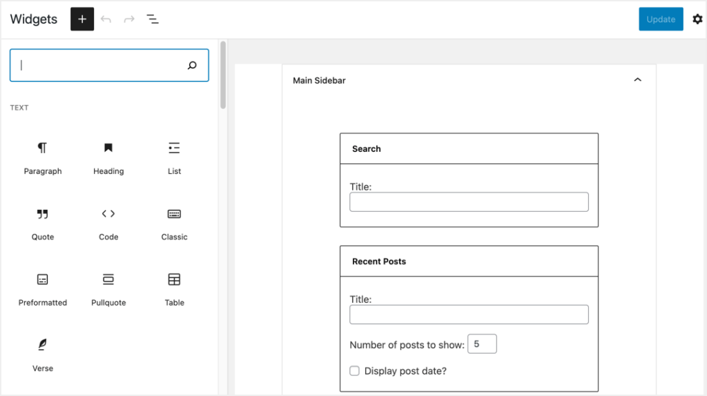 在尝试完全依赖侧边栏小工具之前,请注意WordPress开发的最新趋势。完整的站点编辑已经在这里,它完全改变了您使用侧边栏和小工具的方式。目前,您可以在“外观”菜单下看到小工具部分,以使用类似于Gutenberg区块编辑器界面的区块。