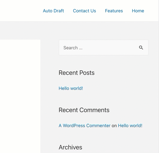 保存小工具并检查您的实时站点在滚动内容时小工具是否具有粘性。例如,我们将搜索小工具添加为第一项并将其设置为固定小工具。当您在已发布的网站上滚动页面内容时,它会如下所示(选中侧边栏顶部的搜索框)。