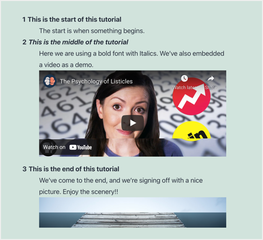 从上面显示的示例中可以看出,您可以轻松地将图像、内容和视频以及每个列表项轻松包含在内。