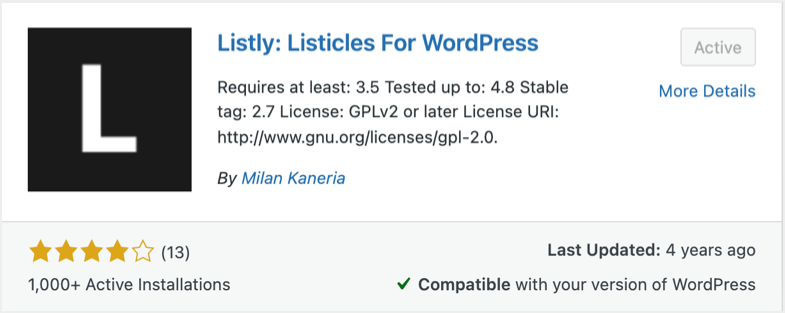 这是在WordPress上创建列表的另一个不错的选择。虽然它较旧并且有一段时间没有更新,但这个插件非常适合在WordPress网站中创建、维护和吸引客户的注意力到列表文章,也就是listicles。
